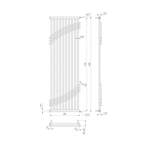 Водяной полотенцесушитель Бордо 1600х500 с межосевым растоянием для подключения 1570мм, диметр подключения G 1/2'' состоит из 10 стійок/ 6 дуг ребер. Дизайн-радиатор Бордо производсветнного предприятия Mario изготовлен из нержавеющей стали АІSI 304 может быть оборудован электрическим теном.