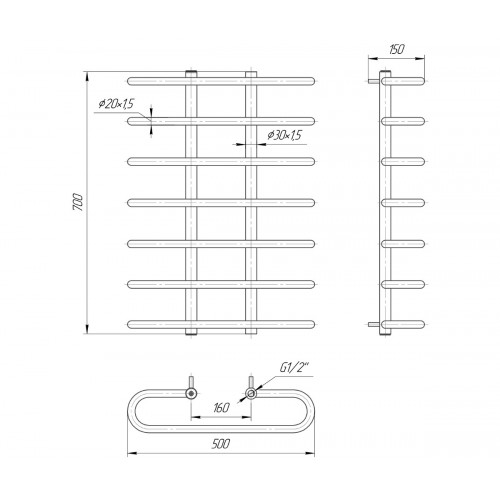 Модель Сахара 700x500/160 водяного типа удивляет оригинальностью своей конструкции, что состоит из семи горизонтальных П-образных перемычек прямоугольной формы с закругленными углами, отступающих от стояков на 90 мм. Такая особенность дизайна полотенцесушителя Сахара 700x500/160 позволяет не только неординарно дополнить интерьер своей ванной комнаты, но и сделать использование изделия более практичным и функциональным. Данное изделие имеет высоту 700 мм, ширину – 500 мм, межосевое расстояние – 160 мм. Выполнена модель из европейской нержавеющей стали марки AISI 304, а рекомендуемая мощность ТЭНа в случае подбора трубчатого электронагревателя - 200 W.