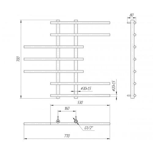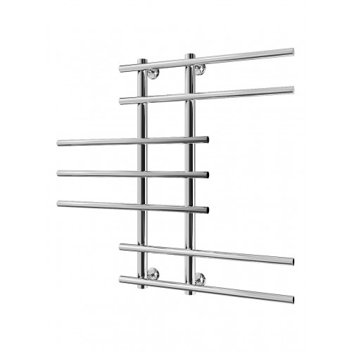 Выполненный из надежной европейской нержавеющей стали марки AISI 304 полотенцесушитель водяного типа Симфония 700x770/160 имеет оригинальные конструктивные особенности, что отличают его от прочих подобных моделей. Все горизонтальные накладные перемычки разделены на три блока по несколько штук в каждом, что расположены в шахматном порядке относительно друг друга. Благодаря этому использование изделия становится более практичным и удобным. Высота полотенцесушителя 700 мм, 770 мм – ширина, 160 мм – межцентровое расстояние, а рекомендуемая мощность ТЭНа в случае его монтажа - 200 W.