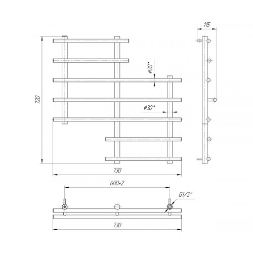 Семь накладных горизонтальных перемычек разного размера по длине сварены между собой с помощью трех вертикальных осей таким образом, что визуально конструкция напоминает собой два полотенцесушителя в одном. Благодаря такому неординарному внешнему виду такое изделие не только будет практичным и удобным в использовании, но и привнесет оригинальность в любой интерьер ванной комнаты. Полотенцесушитель Сонет 720x730/600, где 720 мм – высота, 730 – ширина, а расстояние между осями – 600 мм, выполнен из нержавеющей европейской стали AISI 304. Если же Вы хотите обеспечить себя теплом и уютом на весь год, независимо от продолжительности отопительного сезона, то данный полотенцесушитель может быть оборудован ТЭНом рекомендуемой мощностью 200 W.