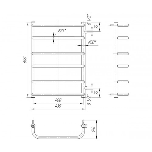 Водяной полотенцесушитель Марио Стандарт Б/П 1/2" 600x450/500
