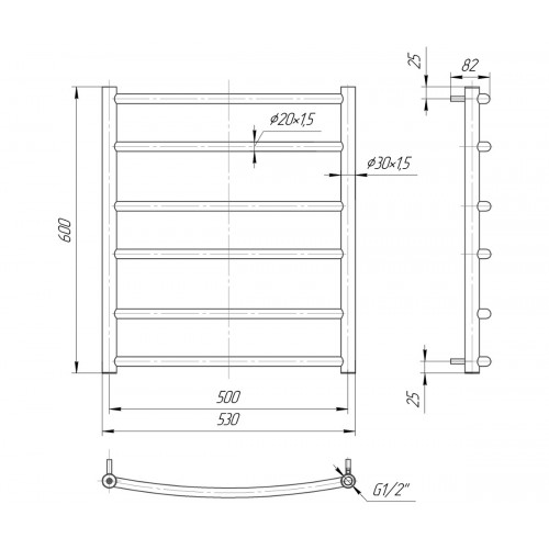 В современном вечно спешащем мире так важен уют и тепло, что отлично сочетаются в полотенцесушителе Классик 600x530/500, что выполнен из европейской нержавеющей стали марки AISI 304. Всем полюбившаяся классика в дизайнерском оформлении изделия, без сомнения, станет идеальным дополнением любой ванной комнаты. Данная модель имеет высоту 600 мм, ширина – 530 мм, межцентровое расстояние – 500 мм, а диаметр подключения G 1/2''. В конструкции полотенцесушителя возможно наличие трубчатого электронагревателя в случае, когда необходима «трансформация» водяного изделия в электрическое, при этом компания-производитель рекомендует использовать ТЭН мощностью 120W.