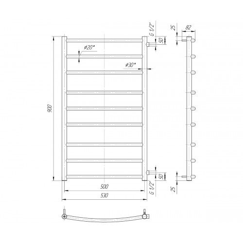Водяной полотенцесушитель Классик Б/П 1/2" 900х500 с межосевым растоянием для подключения 800мм, диметр подключения G 1/2'' состоит из 9 ребер. Полотенцесушитель Классик Б/П 1/2" производсветнного предприятия Mario изготовлен из нержавеющей стали АІSI 304.