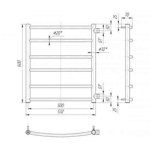 Водяной полотенцесушитель Классик Б/П 1" 600х400 с межосевым растоянием для подключения 500мм, диметр Водяной полотенцесушитель Классик Б/П 1" 600х500 с межосевым растоянием для подключения 500мм, диметр подключения G 1'' состоит из 5 ребер. Полотенцесушитель Классик Б/П 1" производсветнного предприятия Mario изготовлен из нержавеющей стали АІSI 304.
