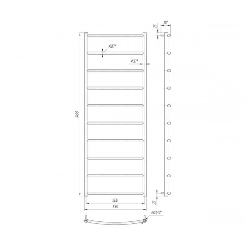 Водяной полотенцесушитель Классик HP 800х400 с межосевым растоянием для подключения 400мм, диметр подключения G 1/2'' состоит из 6 ребер. Полотенцесушитель Классик HP производсветнного предприятия Mario изготовлен из нержавеющей стали АІSI 304 может быть оборудован электрическим теном.