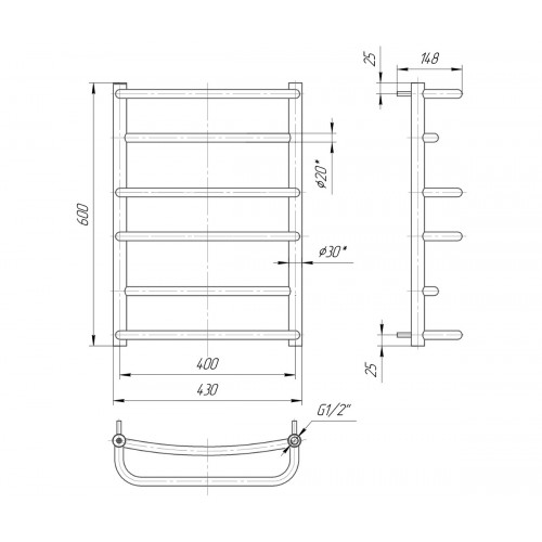 Полотенцесушитель Люкс 600x430/400 несмотря на относительно небольшие размеры, отличается функциональностью и удобством в пользовании благодаря выступающим 4м П-образным перемычкам в конструкции изделия. Данная модель имеет в высоту 600 мм, в ширину - 430 мм, 400 мм – межцентровое расстояние, а диаметр подключения G 1/2''. Водяной полотенцесушитель Люкс 600x430/400 выполнен из европейской нержавеющей стали марки AISI 304, что в сочетании с двадцатилетней надежностью компании-производителя на рынке подтверждает несомненное качество и пожизненную гарантию.