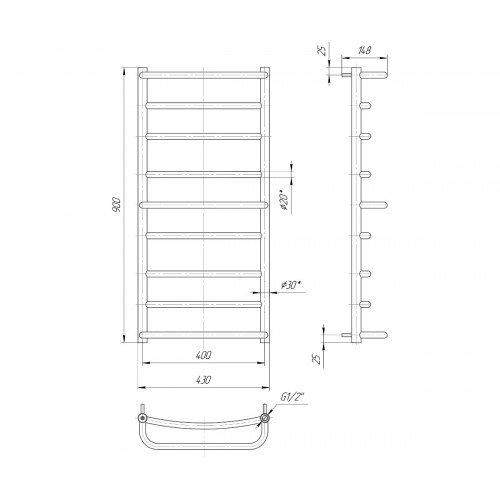 Водяной полотенцесушитель Марио Люкс 900x430/400