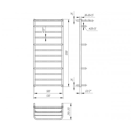 Водяной полотенцесушитель Люксор 1200х500 с межосевым растоянием для подключения 500мм, диметр подключения G 1/2'' состоит из 12 ребер. Полотенцесушитель Люксор производсветнного предприятия Mario изготовлен из нержавеющей стали АІSI 304 может быть оборудован электрическим теном.