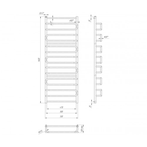 Водяной полотенцесушитель Ница 1400х500 с межосевым растоянием для подключения 500мм, диметр подключения G 1/2'' состоит из 9 ребер. Полотенцесушитель Ница производсветнного предприятия Mario изготовлен из нержавеющей стали АІSI 304 может быть оборудован электрическим теном.