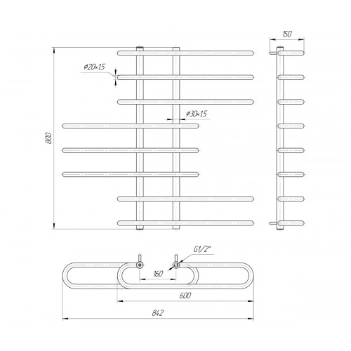 Полотенцесушитель модели Парус 800x850/160 водяного типа гармонично сочетает в себе интересное дизайнерское оформление и надежное качество, подтверждаемое пожизненной гарантией от производителя. Данная модель имеет в своей конструкции 8 перемычек, каждая из которых выступает на 100 мм от стояка и имеет овальную П-образную форму для более практичного применения полотенцесушителя. Высота данного изделия 800 мм, ширина 850 мм, межцентровое расстояние – 160 мм, а диаметр подключения G 1/2''. Полотенцесушитель Парус 800x850/160 выполнен из европейской нержавеющей стали марки AISI 304. Если Вы хотите обеспечить свою ванную комнату теплом и комфортом не только в отопительный сезон, но и в теплое время года, можете подобрать к изделию ТЭН рекомендуемой мощностью 300 W.