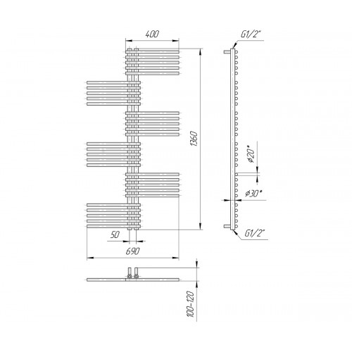 Водяной полотенцесушитель Премиум Симфония 1360x690 с межосевым растоянием для подключения 50мм, диметр подключения G 1/2'' состоит из 30 ребер. Полотенцесушитель Премиум Симфония производсветнного предприятия Mario изготовлен из нержавеющей стали АІSI 304 может быть оборудован электрическим теном.