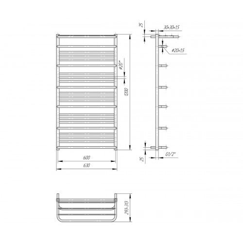 Водяной полотенцесушитель Премиум Люксор 1200х600 с межосевым растоянием для подключения 600мм, диметр подключения G 1/2'' состоит из 22 ребер. Полотенцесушитель Премиум Люксор производсветнного предприятия Mario изготовлен из нержавеющей стали АІSI 304 может быть оборудован электрическим теном.