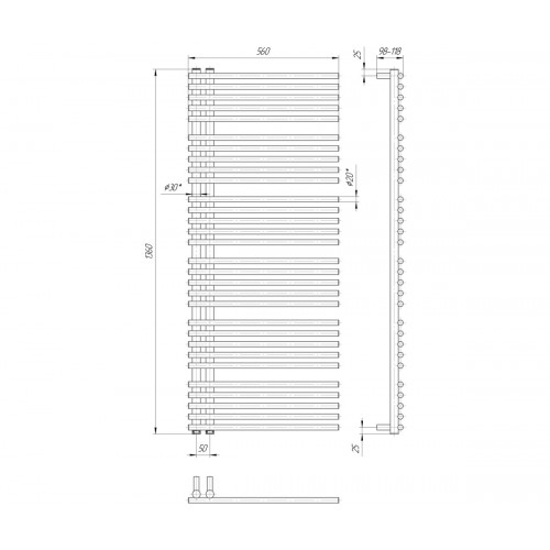 Водяной полотенцесушитель Премиум Марсель 1360x560 с межосевым растоянием для подключения 50мм, диметр подключения G 1/2'' состоит из 30 ребер. Полотенцесушитель Премиум Симфония производсветнного предприятия Mario изготовлен из нержавеющей стали АІSI 304 может быть оборудован электрическим теном.