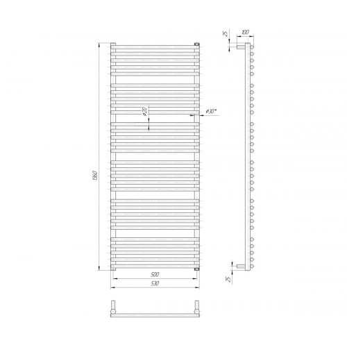 Водяной полотенцесушитель Премиум Турин 1360х500 с межосевым растоянием для подключения 500мм, диметр подключения G 1/2'' состоит из 30 ребер. Полотенцесушитель Премиум Турин производсветнного предприятия Mario изготовлен из нержавеющей стали АІSI 304 может быть оборудован электрическим теном.