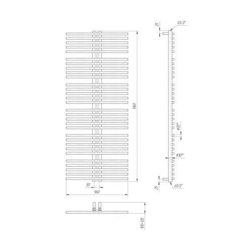 Водяной полотенцесушитель Рим 1360x560 с межосевым растоянием для подключения 50мм, диметр подключения G 1/2'' состоит из 30 ребер. Полотенцесушитель Рим производсветнного предприятия Mario изготовлен из нержавеющей стали АІSI 304 может быть оборудован электрическим теном.