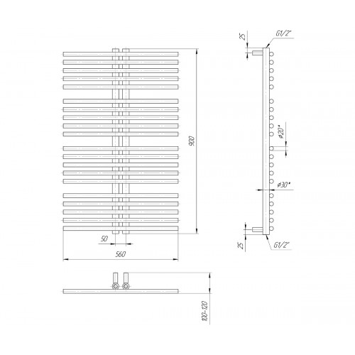 Водяной полотенцесушитель Рим 900x560 с межосевым растоянием для подключения 50мм, диметр подключения G 1/2'' состоит из 20 ребер. Полотенцесушитель Рим производсветнного предприятия Mario изготовлен из нержавеющей стали АІSI 304 может быть оборудован электрическим теном.