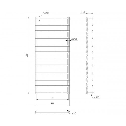 Водяной полотенцесушитель Турин 1200х500 с межосевым растоянием для подключения 500мм, диметр подключения G 1/2'' состоит из 12 ребер. Полотенцесушитель Турин производсветнного предприятия Mario изготовлен из нержавеющей стали АІSI 304 может быть оборудован электрическим теном.