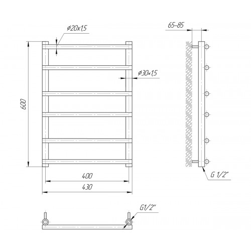 Водяной полотенцесушитель Турин 600х400 с межосевым растоянием для подключения 400мм, диметр подключения G 1/2'' состоит из 6 ребер. Полотенцесушитель Турин производсветнного предприятия Mario изготовлен из нержавеющей стали АІSI 304 может быть оборудован электрическим теном.