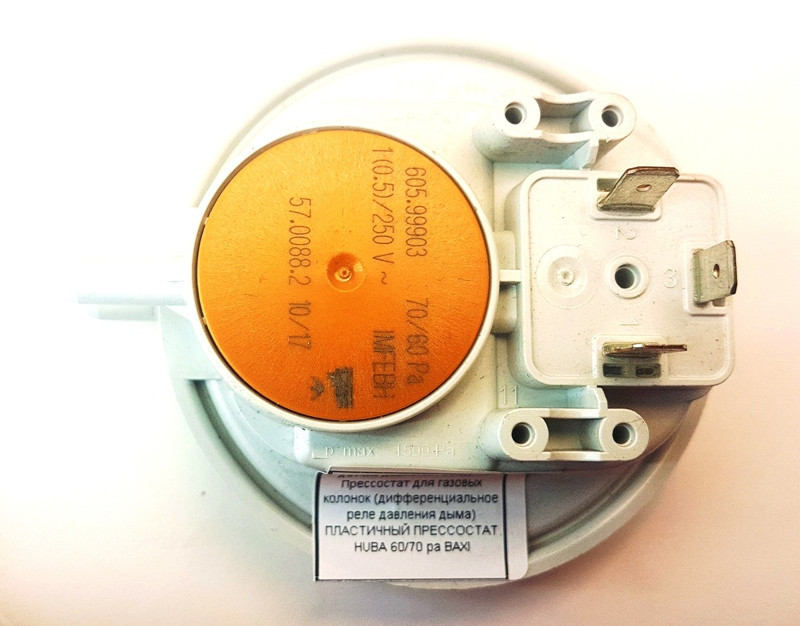70/60 Па, Датчик давления воздуха, Прессостат для газовых колонок (дифференциальное реле давления ды..